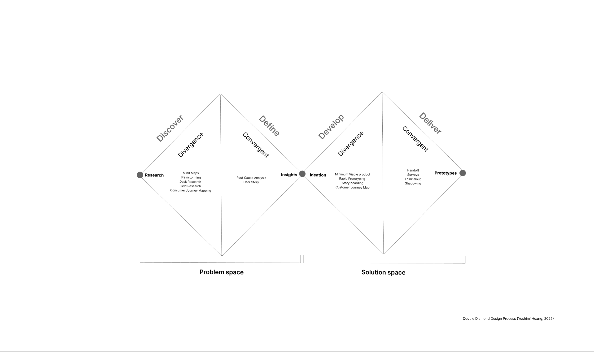 My project will follow the Double Diamond design process, ensuring a structured approach to problem-solving and user-centered design. Let's dive in!