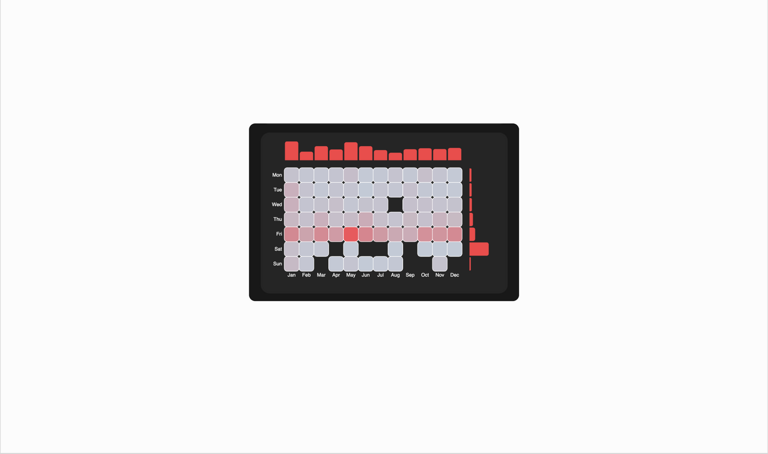 The heatmap visualizes streaming frequency across different days of the week (Y-axis) and months of the year (X-axis).